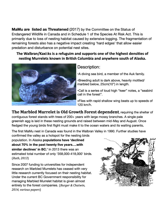 We also acknowledge and express gratitude for the Council’s “draft conservation network of areas reserved from harvesting in its Traditional Territory, including within the Walbran Valley”.