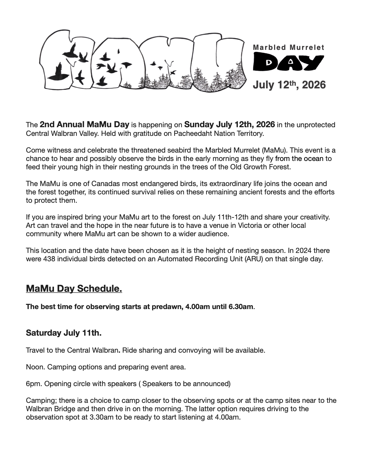 Pacheedaht elder Bill Jones has supported our work in the territory and we continue to consider his guidance as we do our work. Our goal as an organization is to walk alongside the Nation to preserve biodiversity, climate security and cultural connection in the Walbran Valley. We try to do this in a good way that follows Pacheedaht Nations sovereign rights. Our June 8th 2021 letter of support to acknowledge and respect Pacheedaht Nation Territory still stands.