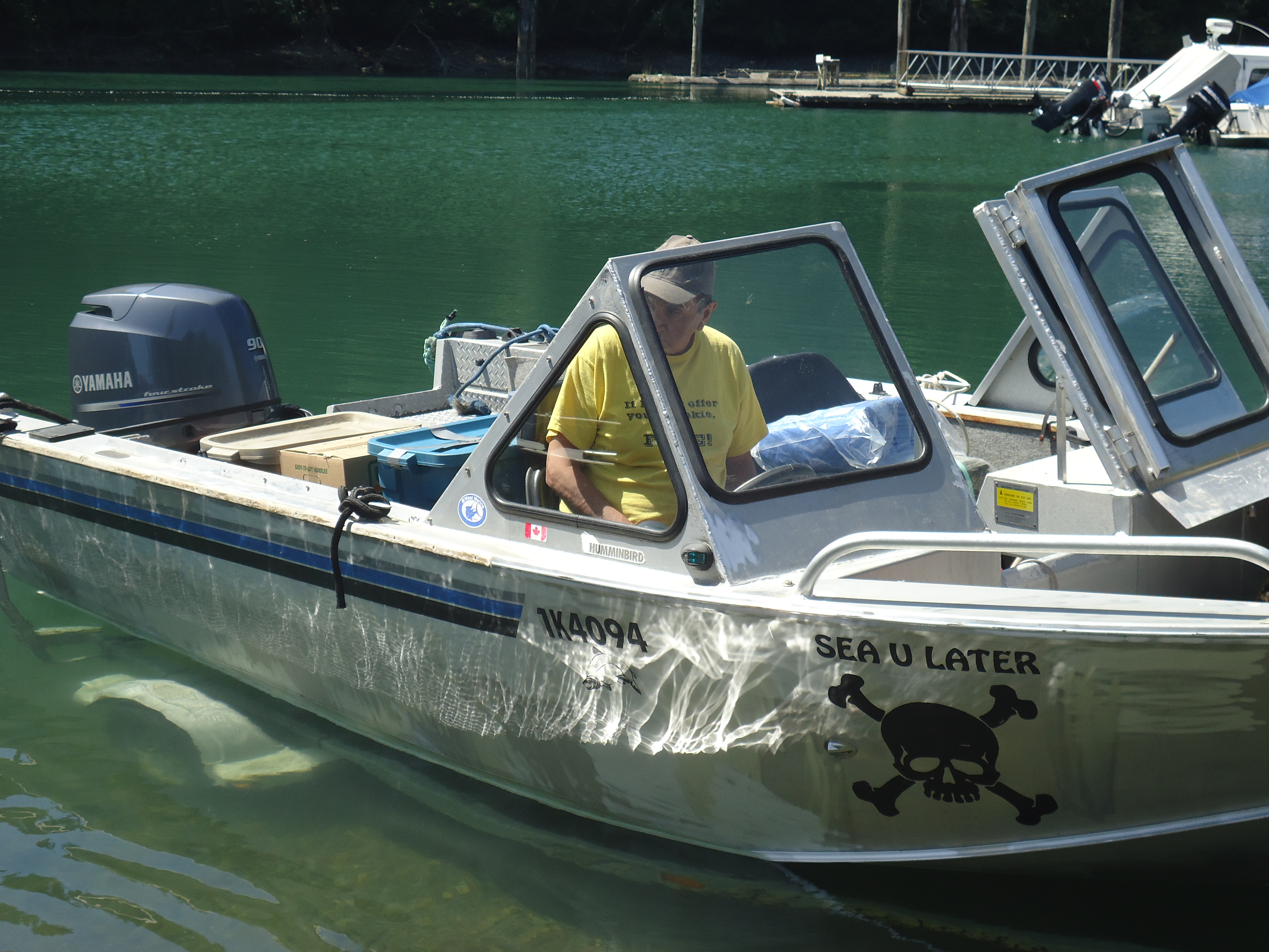 The FoCW recently helped fund raise and repair the boat used by the Knighton family from Qwa-ba-diwa at Carmanah Point. This has enabled the family, who have been long time supporters of the protection of the forests to continue to be on their traditional territory and to carry on their business supplying burgers and aid to the hikers on the West Coast Trail. Many Thanks to the different business and individuals that have helped make this happen. Jay and Glen at SG Power and Shawn at North Craft welding among others. The photos are, above Peter Knighton gets the boat back in the water and below a view of Qwa-ba-diwa and the repaired boat being presented by SG Power. Carmanah is an anglicization of the Nu-cah-nulth phrase Qwa-ba-diwa.