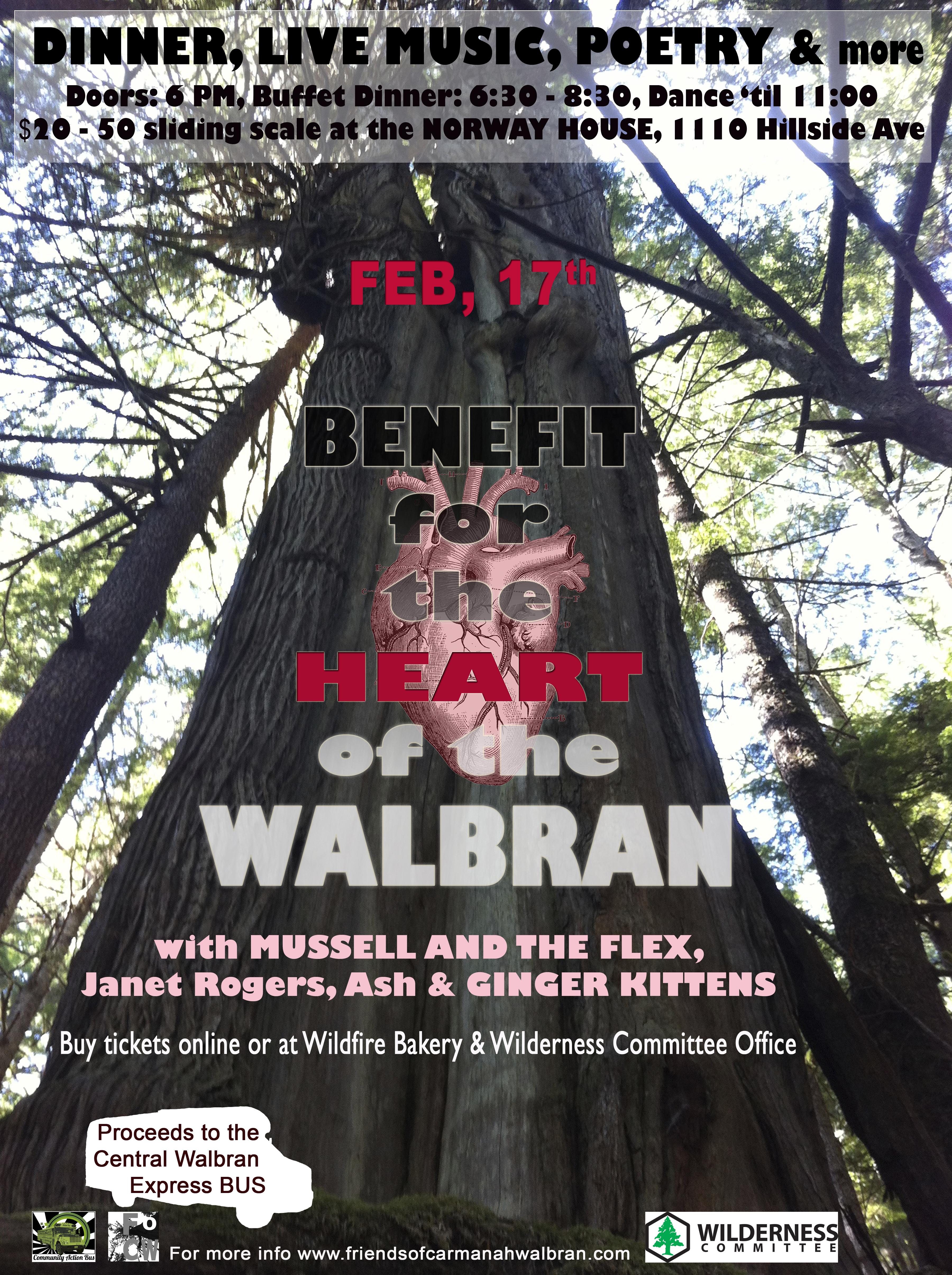 On February 17th, you are invited to a night of love and celebration for all that is wild in our world and our hearts, for good music, great food and amazing spoken word poetry. Join us at the Norway House for live music by Mussell and the Flex, poetry by former Victoria Poet Laureate Janet Rogers and ASH. This is an evening not to be missed!