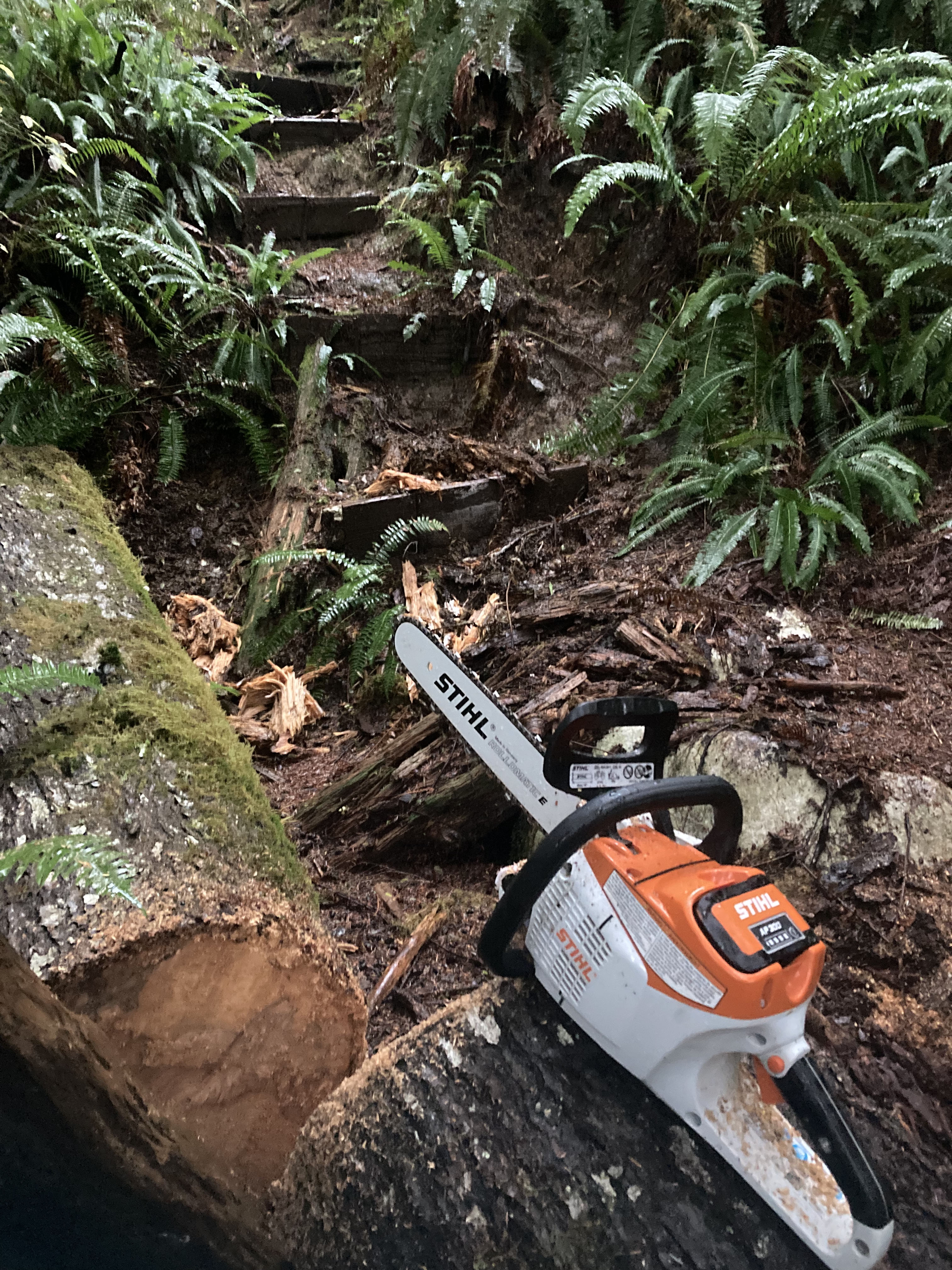 The chainsaw worked excellently providing us with a tool that can work in these sensitive areas, we will hopefully be able to get one more before the trail/visitor season starts next year.