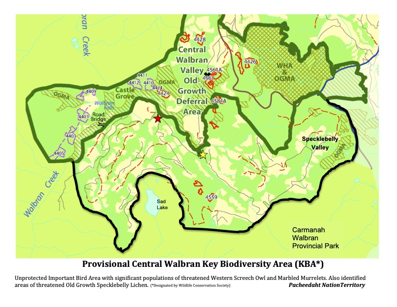 Those wanting to join us on Saturday for a survey of Specklebelly Lichen and a wetland area a 4wd vehicle is recommended. The route to the survey area will be marked with a signpost. The GPS coordinates for a left turn onto a spur road are 48.64402,-124.56308 , there will be a signpost here also. Then follow the spur road and signs until meeting spot at 48.63218,-124.54836. Those wanting car pooling options can meet at the main area by the Walbran bridge on Saturday at 11am sharp and the survey will start at 12 noon. In the evening Royann will be giving a presentation on her work with Western Screech Owls.