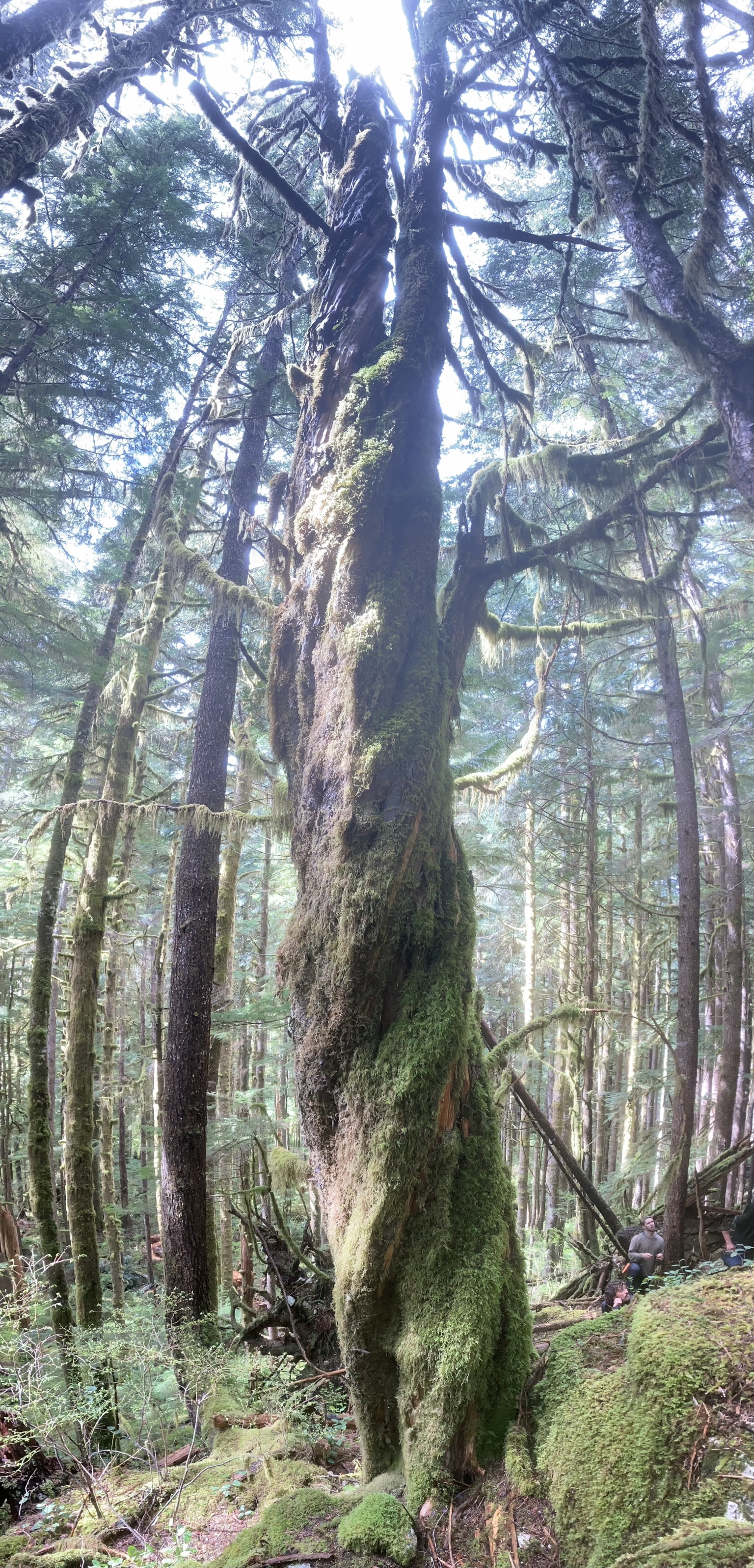 Large spiralled Pacific Yew growing in the deep shaded old growth forest of the Walbran Valley. This is not a common habitat for them as they prefer more open partially shaded areas like stream and river banks.