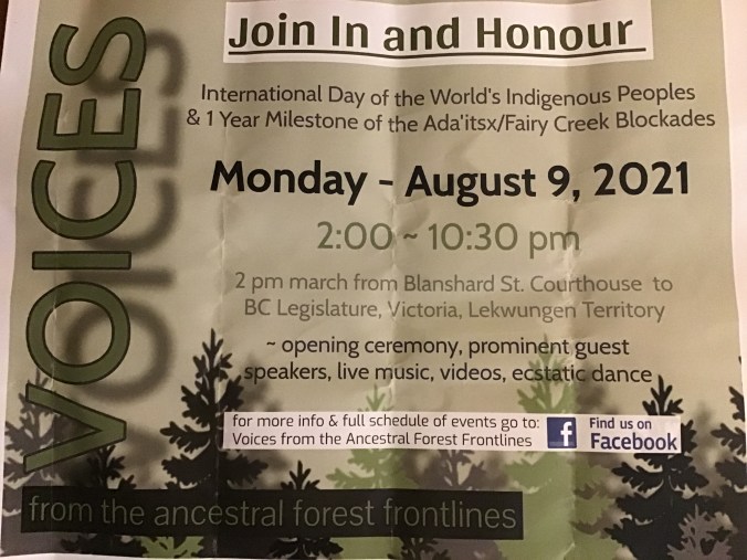 ’Presented with gratitude to Pacheedaht Elder Bill Jones for his important contribution towards the protection of the Ancient forests of the Central Walbran/Kaxi:ks’